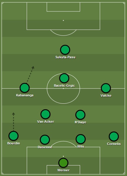 Lorenzo Staelens kiest bij Cercle voor een 4-5-1 met twee buffers voor de verdediging. Groen-zwart gaat uit van een uitstekende organisatie, vechtlust en duelkracht. In doel vertrok de uitstekend keepende Delle naar OG Nice, hij werd vervangen door Werner. Ook een goede doelman, maar wel al tweemaal gedegradeerd uit eerste klasse (zowel met Eupen als met Bergen). Hopelijk geen voorteken.. Vandamme en De Bie zijn z’n onervaren vervangers.