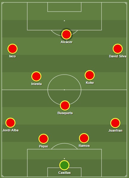 Experimenteren, dat is het codewoord tijdens deze kwalificaties. Als een volleerd chemieleerkracht goochelt Vincente Del Bosque met de elementen in zijn elftal. Tijdens de 5 kwalificatiewedstrijden kregen maar liefst 20 verschillende spelers al een basisplaats. Ondanks de vernedering op het WK 2014 (Spanje sneuvelde al in de poulefase), wordt de verjonging erg geleidelijk doorgevoerd door de bondscoach. Voor Xavi, David Villa, Fernando Torres, Xabi Alonso en Mata is dan wel geen plaats meer, in doel behoudt Casillas de voorkeur op De Gea. Juanfran (30 jaar) en Koke (23) zijn de enige ‘jonge’ nieuwkomers die al een basisstek konden veroveren. Voor de positie 9 liggen pocketspits Paco Alcácer (21, Valencia) en werkpaard Diego Costa in balans. Een heel fluwelen revolutie dus… Daardoor blijft het wel een elftal met heel wat ronkende namen, een mogelijk ideale balans tussen jong & oud. Spanje staat in zijn groep tweede op 3 punten van Slowakije.