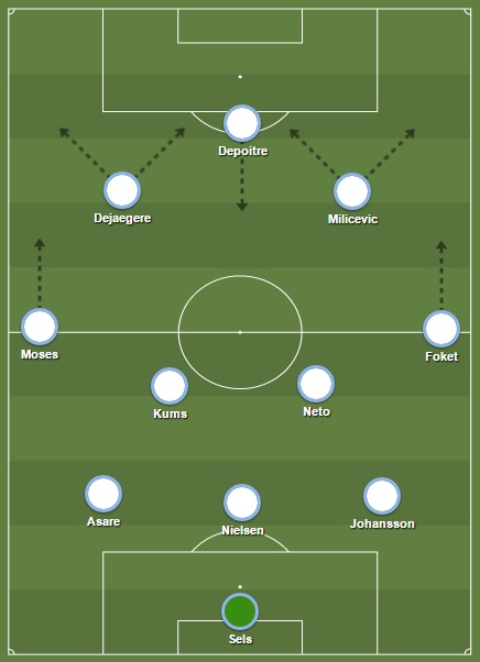 De driemansverdediging van Gent wordt momenteel ingevuld door volgende namen: Asare op links, Nielsen centraal, de nieuwe Zweed Johansson op rechts. Allen spelen ze een belangrijke rol bij de opbouw van achteruit. Johansson moet zich duidelijk nog wat aanpassen: hij krijgt regelmatig de vrijheid om in te dribbelen van achteruit, maar het uitvoetballen blijkt zijn zwakke punt. Gershon, momenteel nog out van een blessure, zal straks knokken voor een basisplaats. Deze week voegde Vanhaezebrouck met Mitrovic namelijk nog een uitstekende verdediger toe aan zijn selectie, drummen voor de plaatsjes achterin dus. Johansson lijkt dan ook maar een tijdelijke oplossing op rechts.