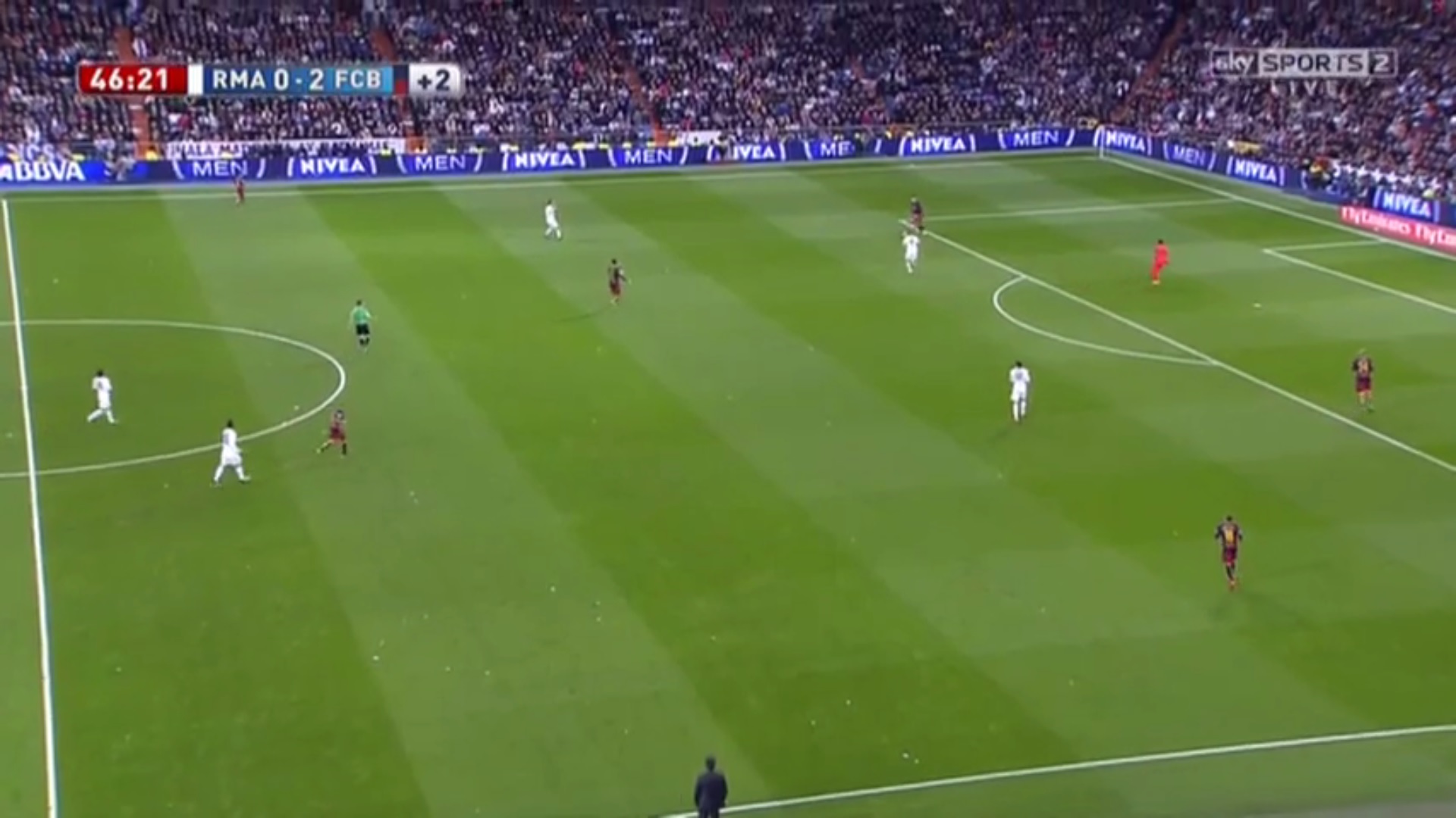 Barcelona tikte zich uiteindelijk de hele wedstrijd door rustig tussen de Madrileense rangen. Iniesta en Roberto dirigeerden in aanvallend opzicht en konden Suarez en Neymar voortdurend in gevaarlijke posities vrij krijgen, Alba en Alves kregen de ruimte om te overlappen maar beperkten hun infiltraties wat naar het einde toe. De inbreng van Messi bracht het spelletje balbezit naar een nog hoger niveau, uiteindelijk had Barcelona 59% van de tijd de bal in de eigen rangen op vijandige bodem.