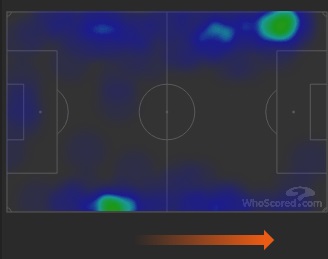 De heatmaps van Luis (bovenaan) en Vrsajlko: die eerste duidelijk veel aanvallender ingesteld dan de tweede (bron: whoscored.com)